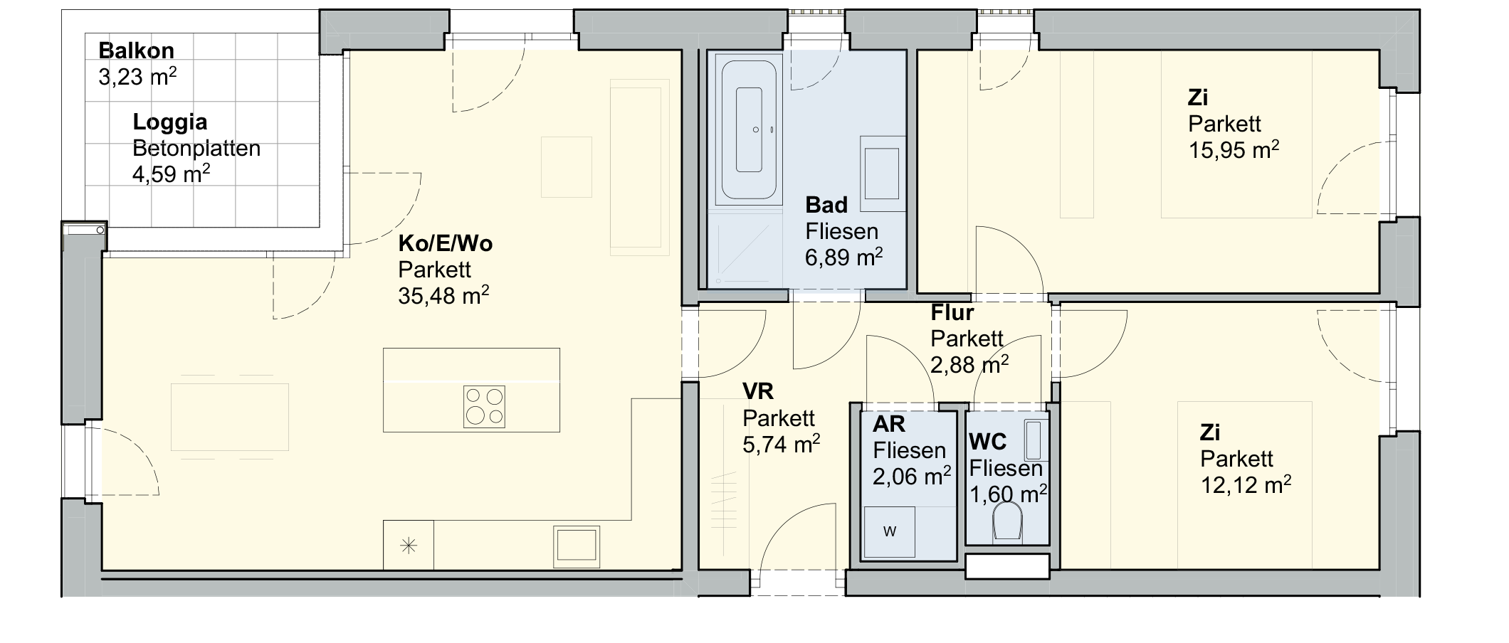Insgesamt 22 3-Zimmerwohnungen findet man im Schlossquartier. Mit einer Wohnfläche 69 – 107 m² und unterschiedlichen Wohnungslayouts eine gute Wahl sowohl für Singles mit höherem Platzbedarf als auch für Familien. Auch für kleine Wohngemeinschaften wären diese Wohnungen ideal. Wer aktuell eine Neubauwohnung in Eisenstadt sucht, kann hier garantiert nichts falsch machen. Denn durch die einzigartige Lage in direkter Nachbarschaft zum Schloss Esterházy ist eine Wertsteigerung so gut wie garantiert und die Suche nach einem potenziellen Käufer oder Mieter kurz. Ziehen Sie ein und entdecken Sie das ganz besondere Lebensgefühl für das der Name Schlossquartier steht.