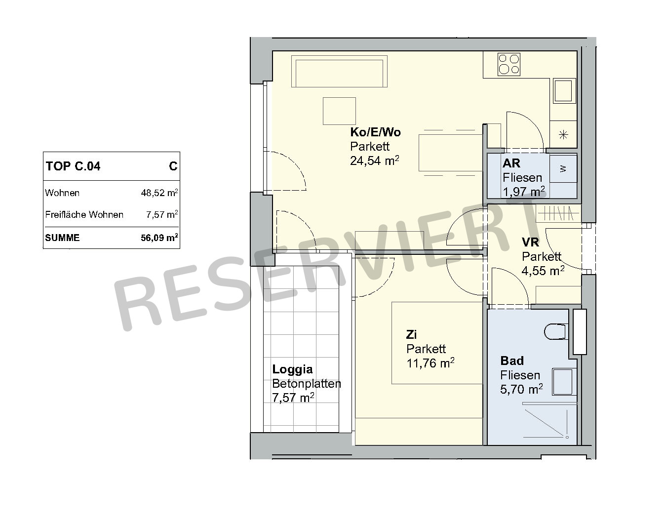 | Nutzfläche gesamt | 56,09 m² |